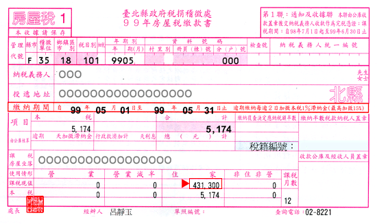 以上圖為例,房屋的評定現值為 431,300元(A)